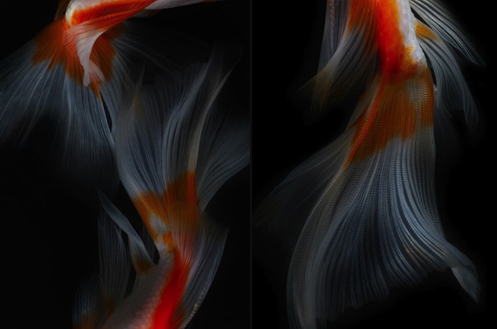 Tecnologia é um troço muito do legal! Peixinhos dourados também! A junção de uma câmera ultra-mega-fodástica e esses belos animaizinhos só poderia resultar em ótimas imagens. Evidentemente, que foram produzidas por um fotógrafo igualmente fodástico: Hiroshi Iwasaki.
